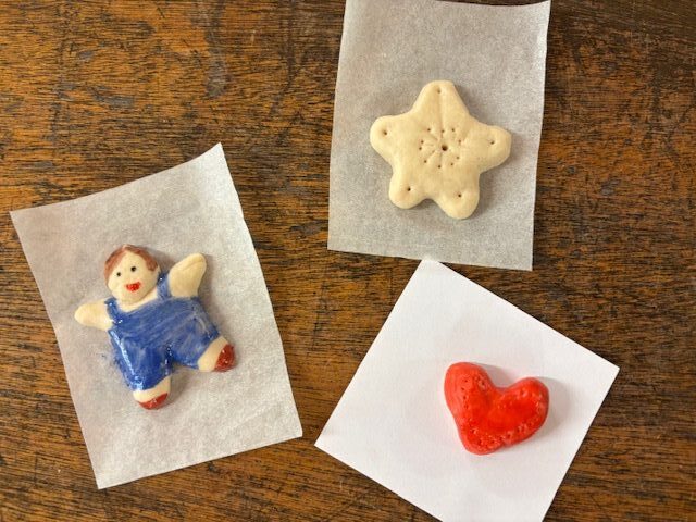 Rol het zoutdeeg uit, steek er vormpjes uit, schilder en droog in de droogkast. Zo maak je de leukste hangertjes of figuurtjes.